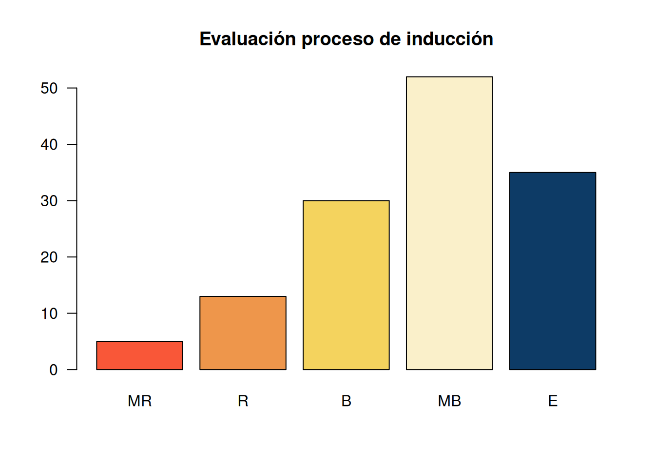 barplot(ev, col=c("#f95738","#ee964b", "#f4d35e", "#faf0ca", "#0d3b66"),