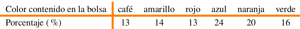 Se realiza una verificación mediante el conteo delos dulces contenidos e n una bolsa de 14 onzas de dulces M|M, obteniendo los siguientes resultados: 70 duces cafés, 72 amarillos, 61 rojos, 118 azules, 108 naranjas y 85 verdes.