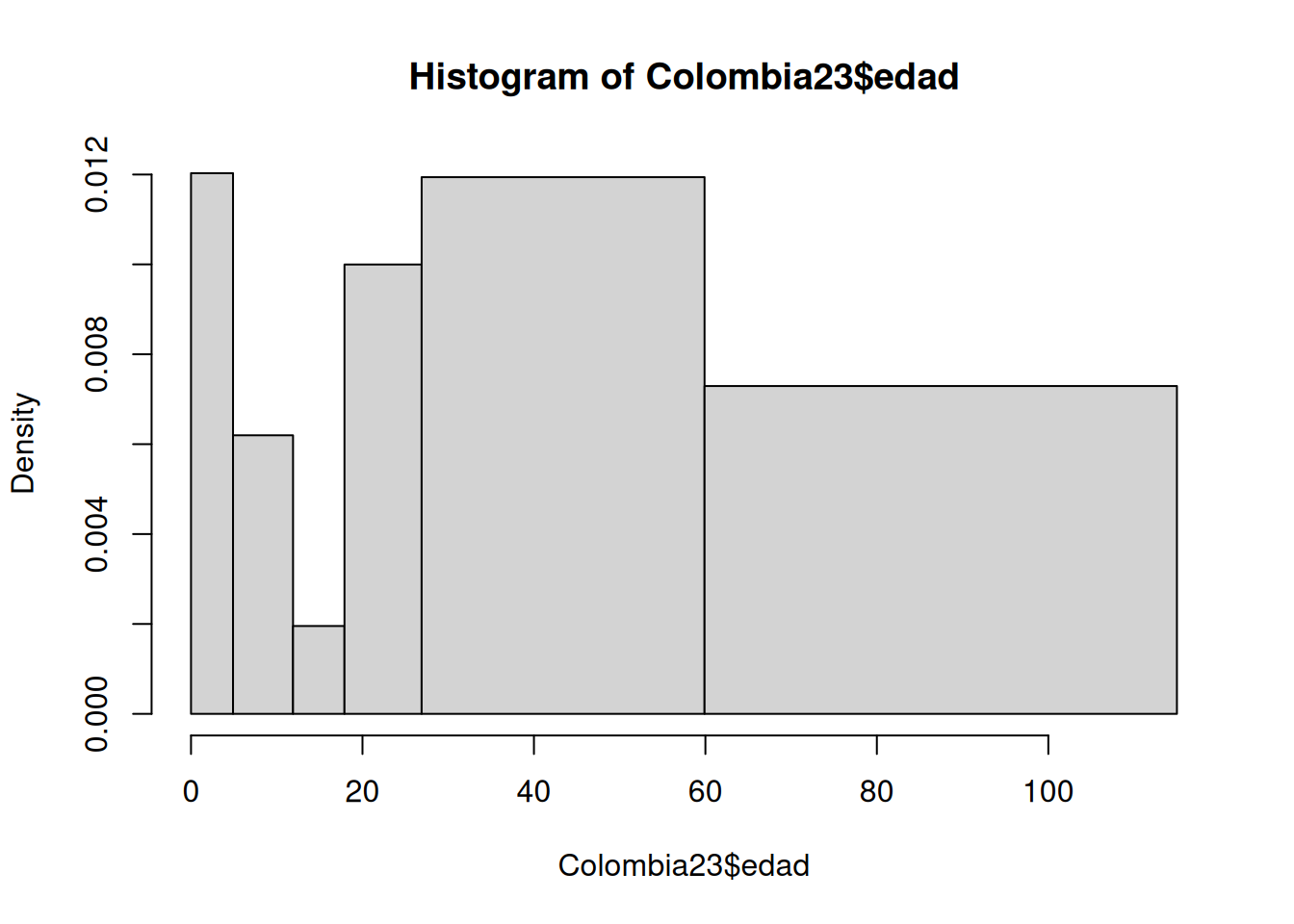 Colombia23$edadR[Colombia23$edad<=5]="1. (0 a 5 años]"