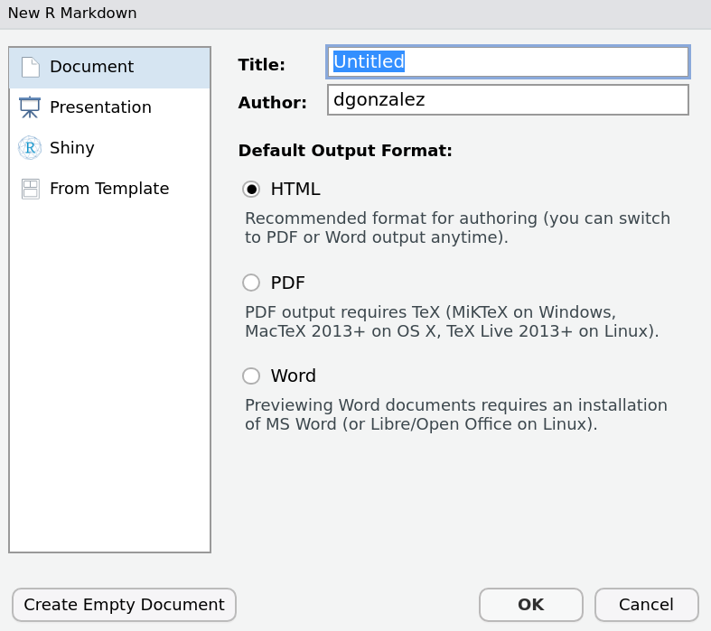 A través de RStudio se pueden construir documentos en formatos PDF, DOC, HTML entre otros. En esta ocasión se describe como realizar un informe utilizando para ello un archivo Rmd en RStudio.