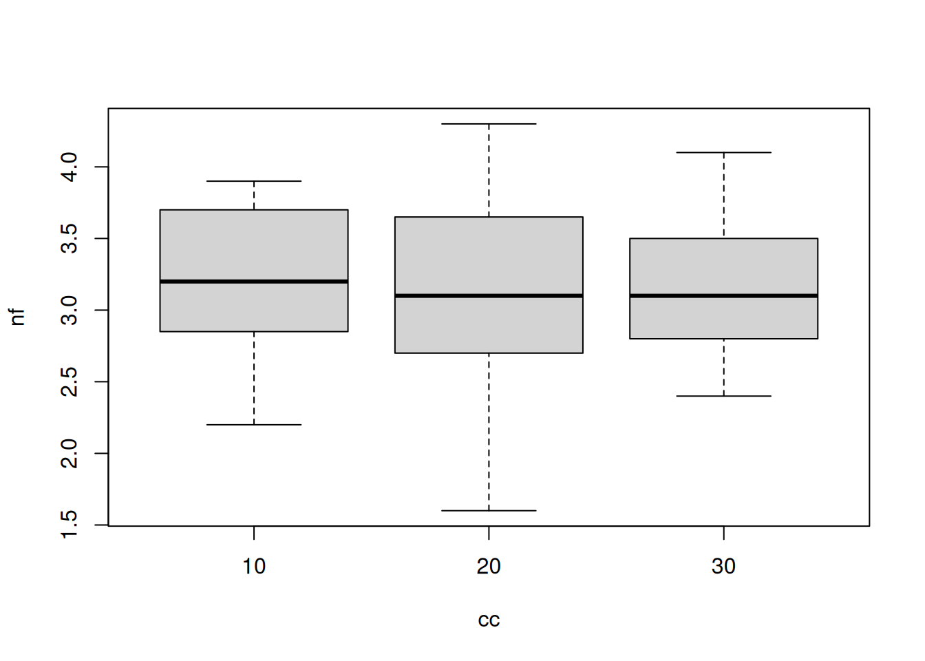 boxplot(nf~cc)