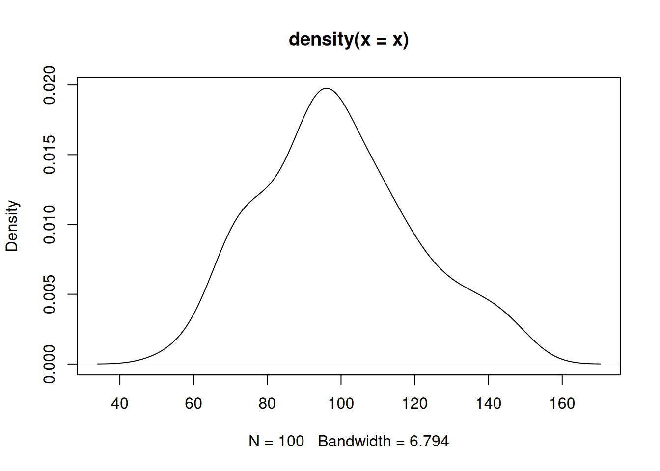 plot(density(x),cex.lab=.8, # tamaño de etiqueta ejes