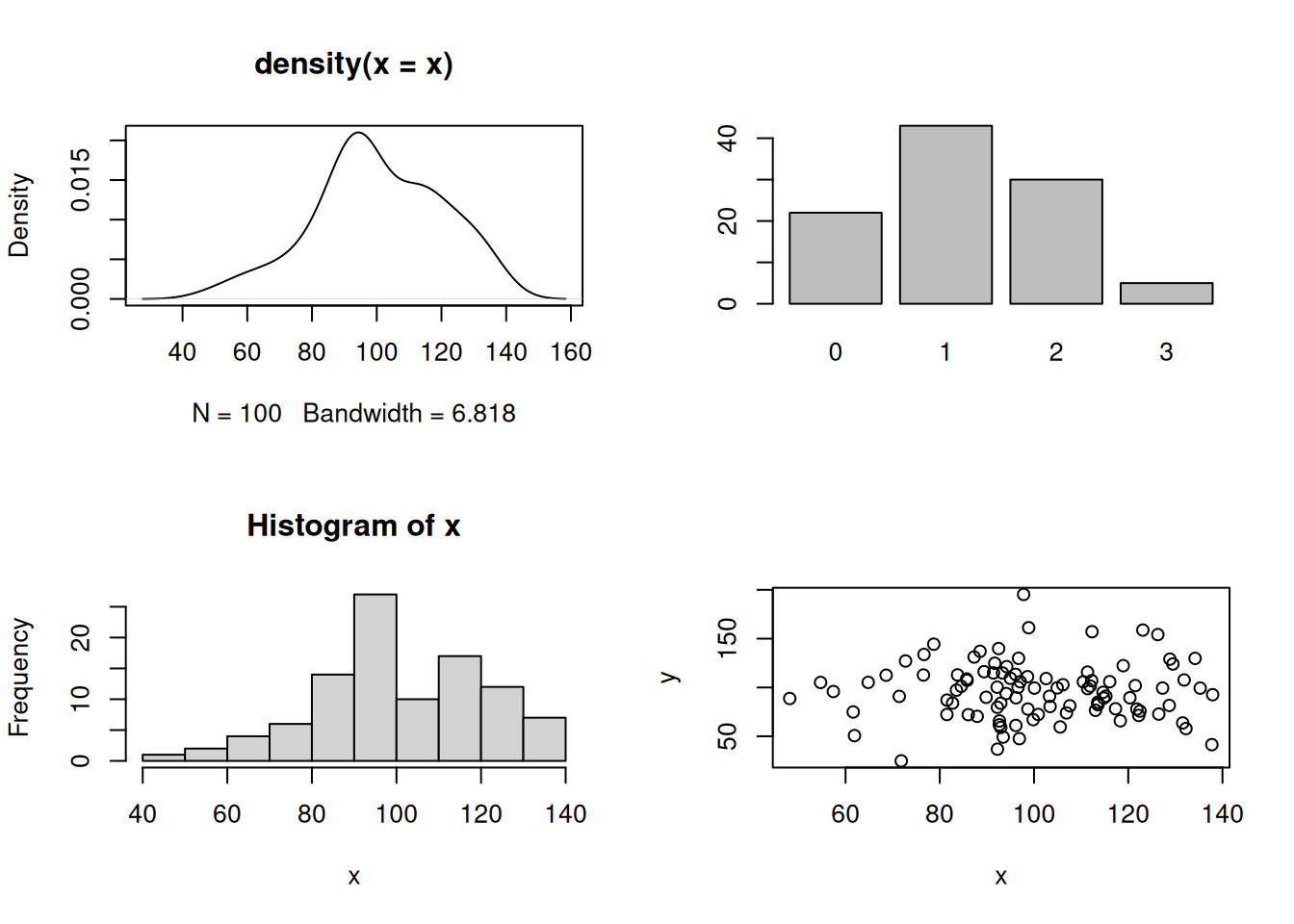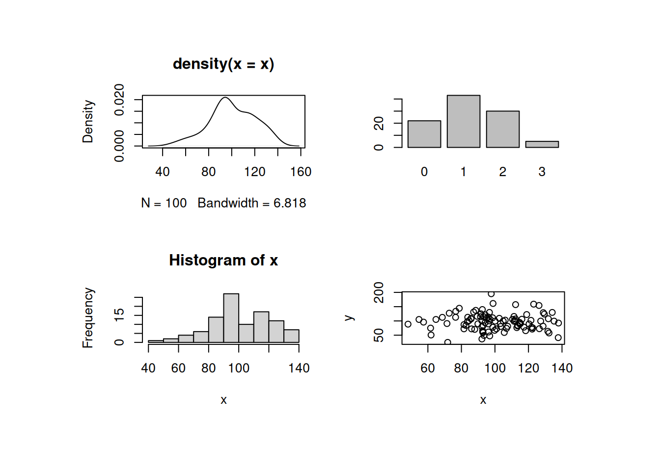 par(mfrow = c(2, 2) ) # definición de la matriz