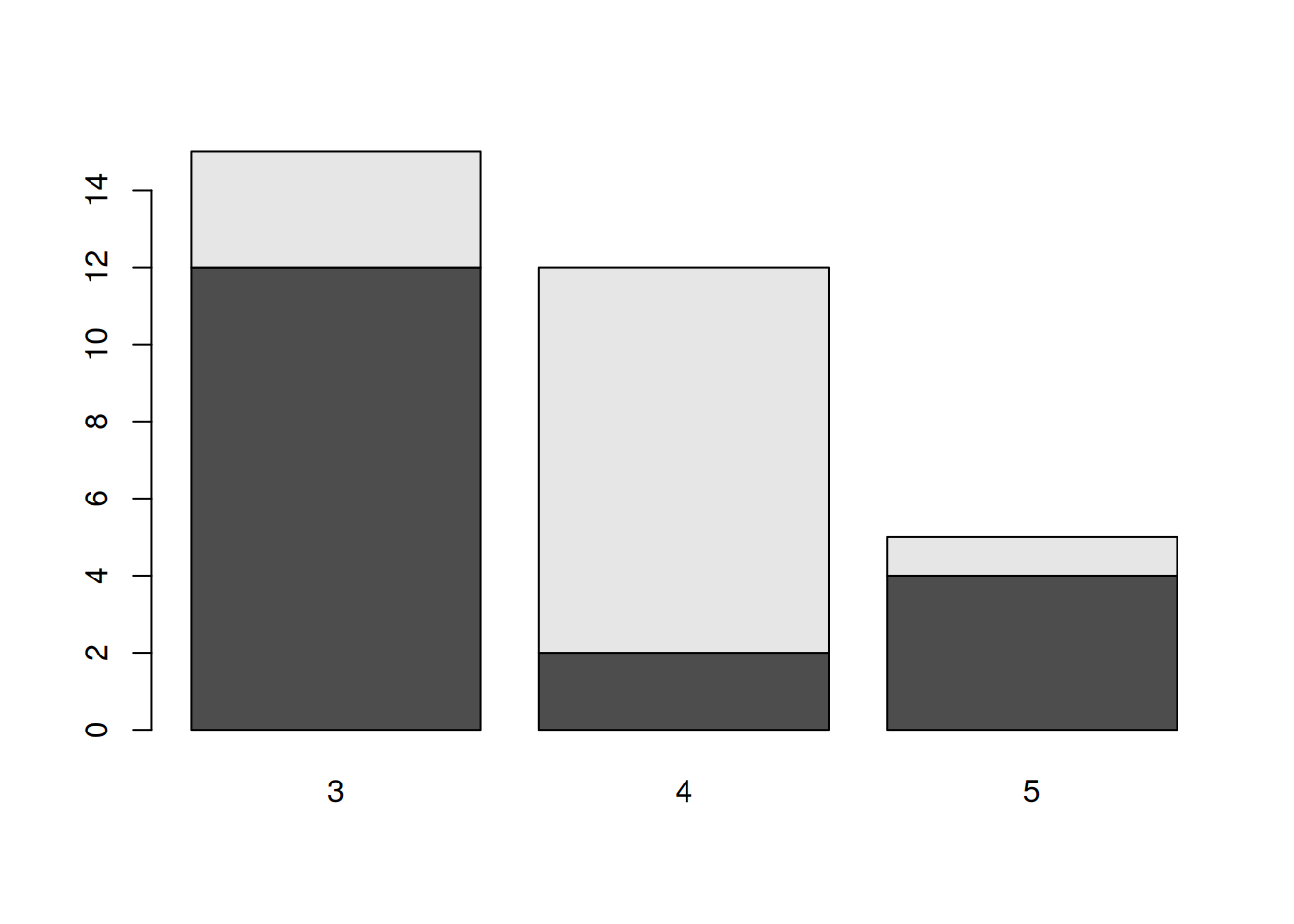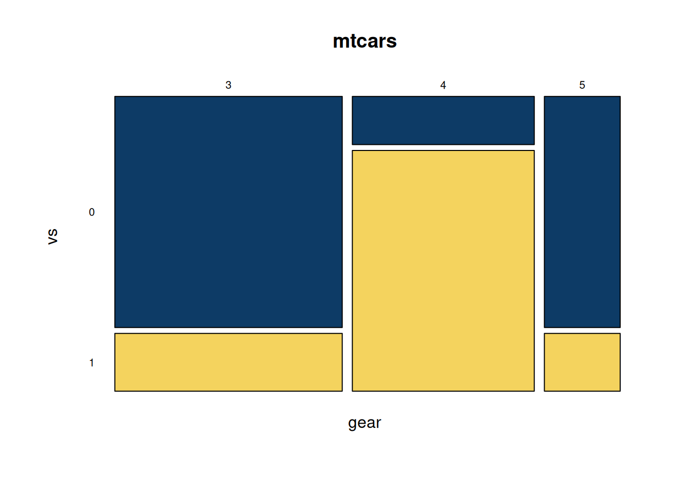 counts <- table(mtcars$vs, mtcars$gear)