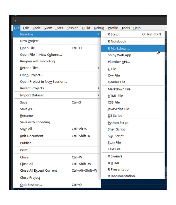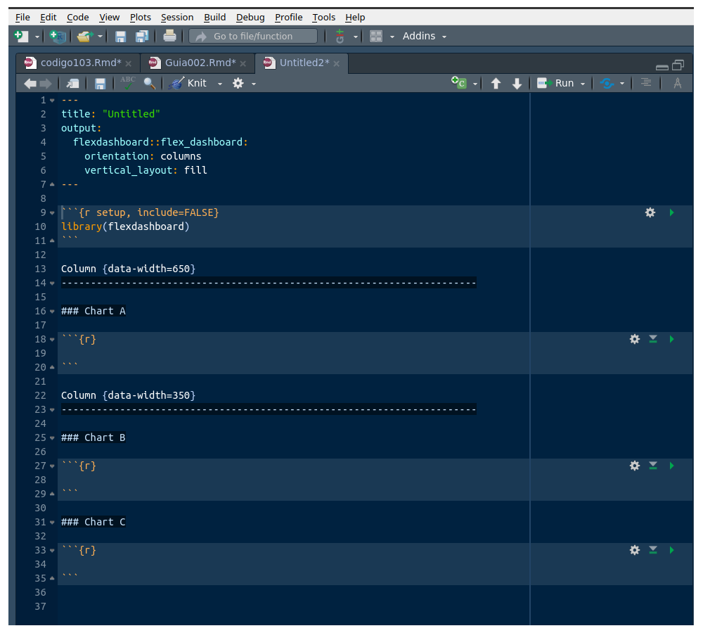 Inicialmente utilizamos la plantilla que para este propósito tiene RStudio, entrando por el menú : File/ New file / RMarkdown..
