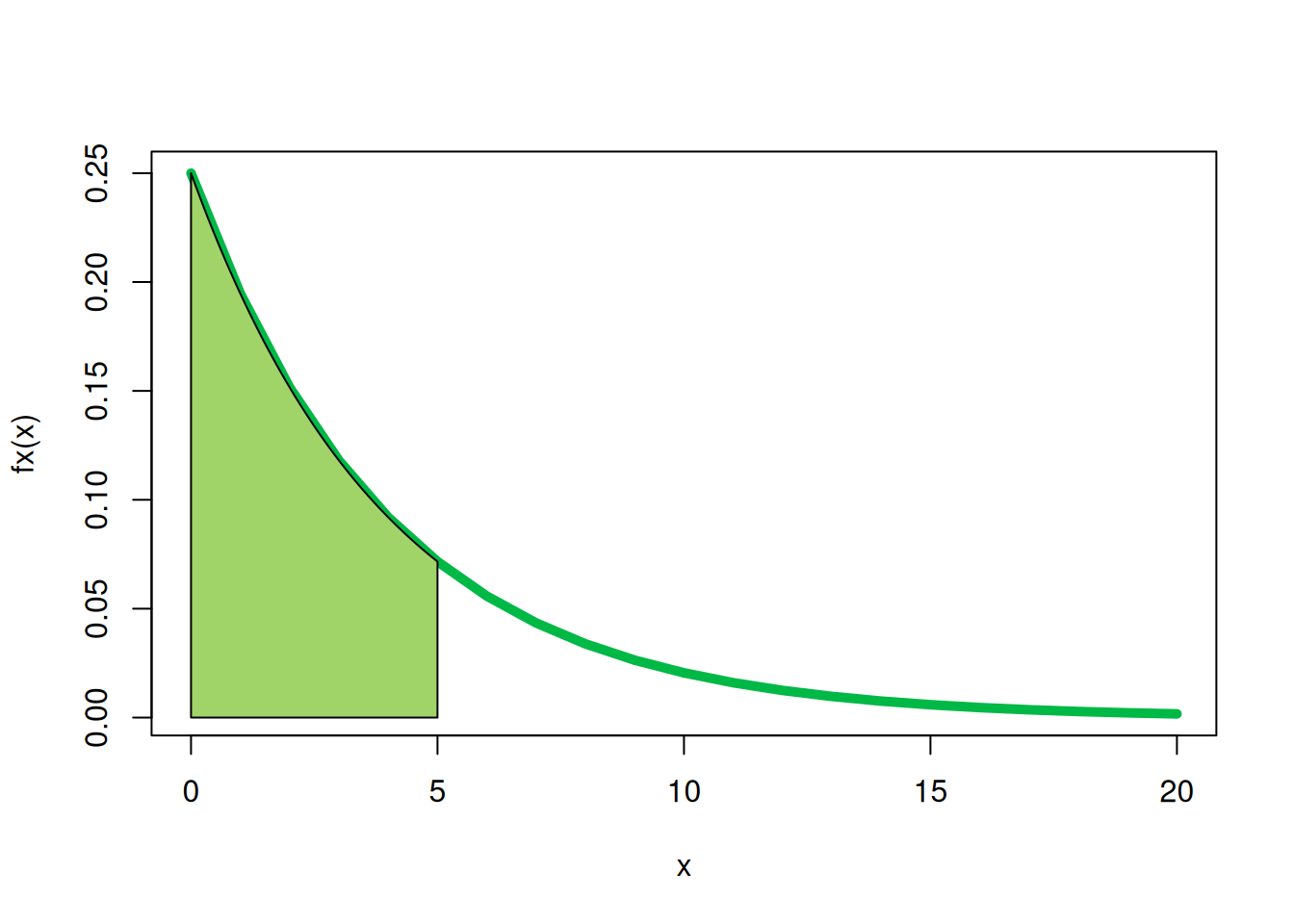 fx=function(x){1/4*exp(-x/4)}