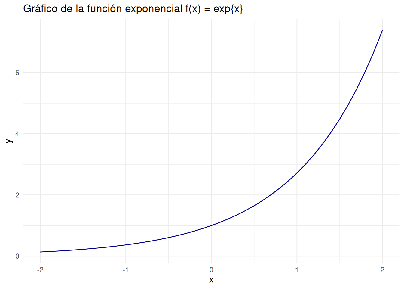labs(title = "Gráfico de la función exponencial f(x) = exp{x}",