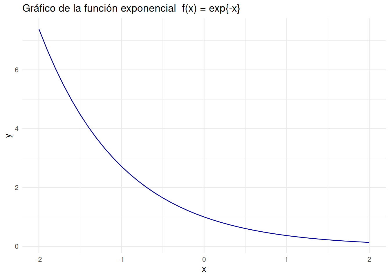 labs(title = "Gráfico de la función exponencial f(x) = exp{-x}",