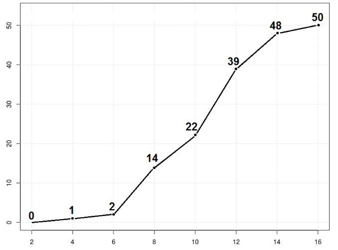 2 | 3 4 | 4 6 | 4 7 8 1 1 1 3 4 5 5 8 9 8 | 1 3 0 0 4 5 6 7 10 | 1 6 6 6 8 8 9 9 9 9 0 3 5 5 5 5 8 12 | 1 4 5 7 1 1 3 8 8 14 | 6 2