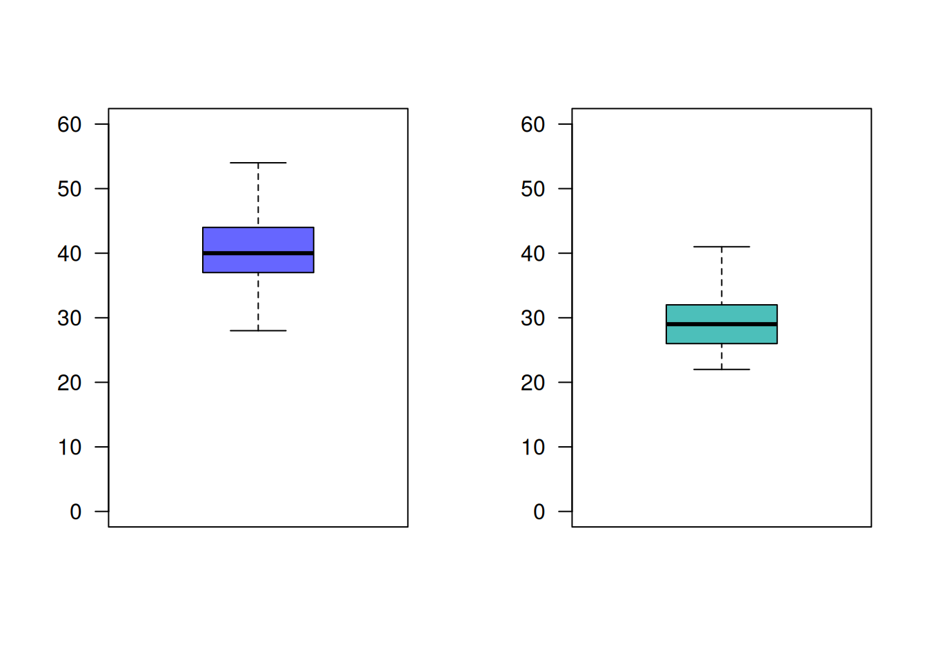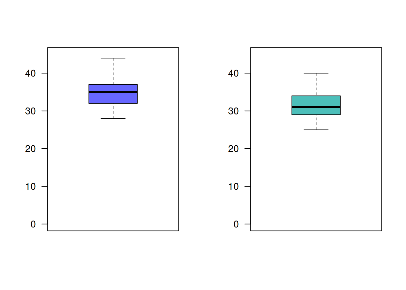 | desviación estandar muestral (\(s\)) | 25 | 28 |