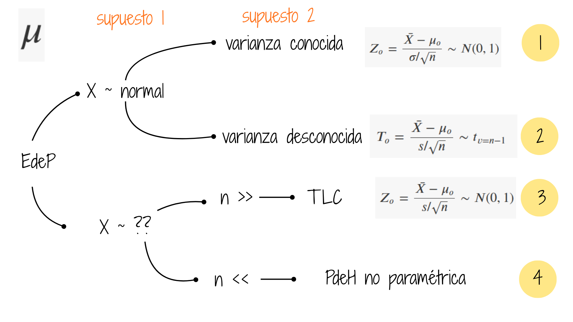 | Cola inferior | \(H_{0}: \theta \geq \theta_{o}\) vs \(H_{0}: \theta < \theta_{o}\) |