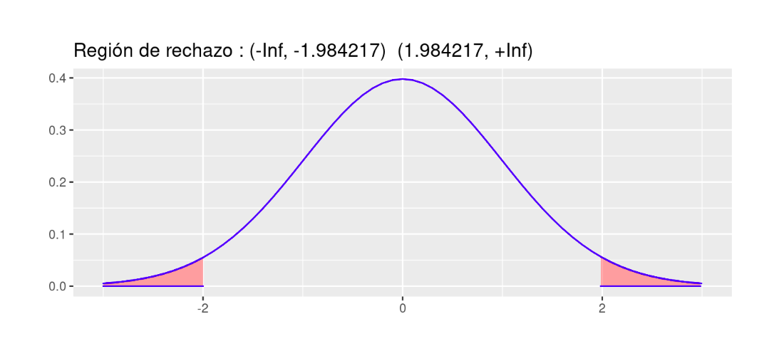 | Dos colas | \(H_{0}: \theta = \theta_{o}\) vs \(H_{0}: \theta \neq \theta_{o}\) |