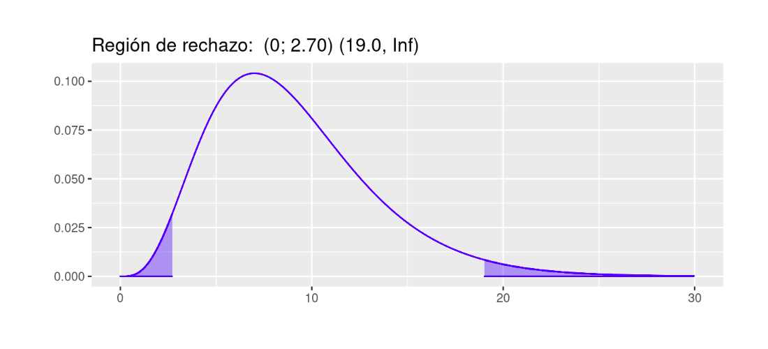 Para una muestra determinada se obtiene un valor del estadístico de prueba, a partir del cálculo y se determina el rechazo o no, de la hipótesis nula.