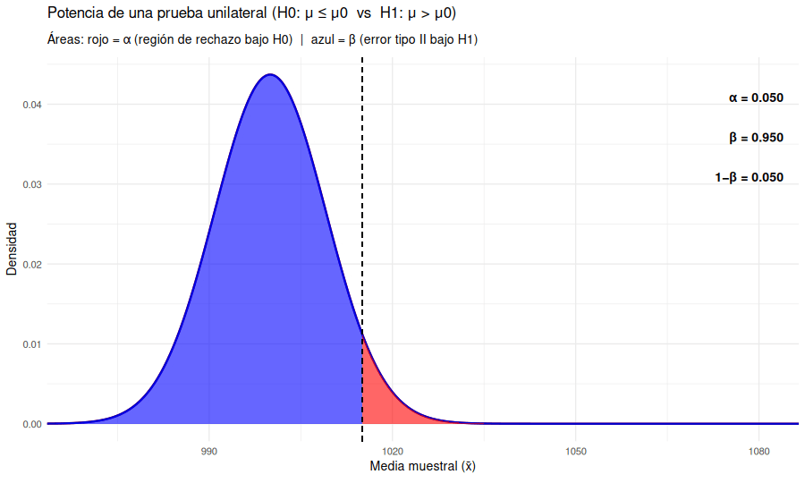 numericInput("mu1", "Valor real de μ (μ₁):", value = 1020, step = 5), # valor verdadero bajo H₁