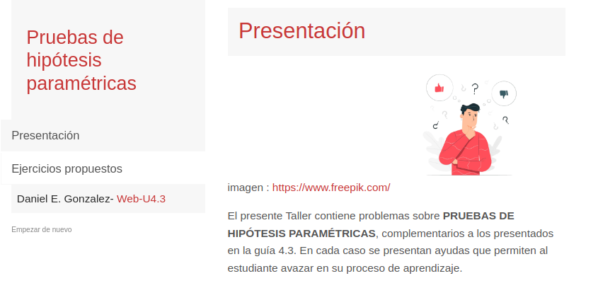 Con el siguiente código en R , podrán abrir un tutorial con problemas propuestos sobre el tema. Es necesario para ello abrir la consola de R o RStudio y correr el código