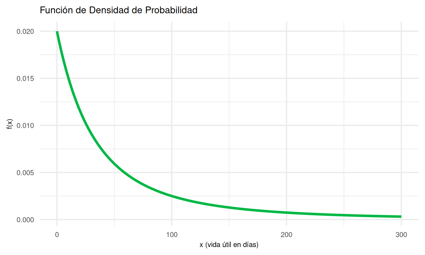 En una tarea de laboratorio, cuando el equipo está operando la función de densidad del resultado, \(X\), es el tiempo,
